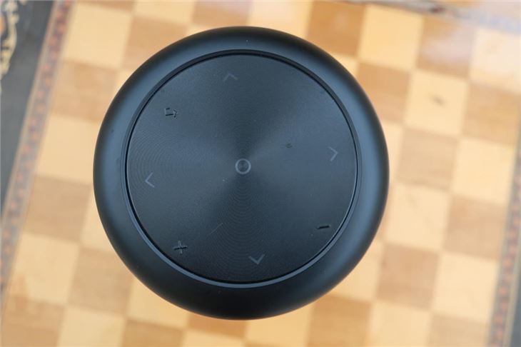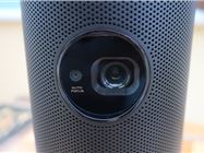 On the front of the projector, you'll find the 720p lens and a small camera that focuses the projection output - meaning it automatically adjusts the autofocus. We needed to manually adjust the focus every now and then (by holding the HDMI button down for a few seconds) but, generally, it does a very good job of doing this itself. On top of the speaker, there are a few useful buttons (directional controls, back button, volume) too.