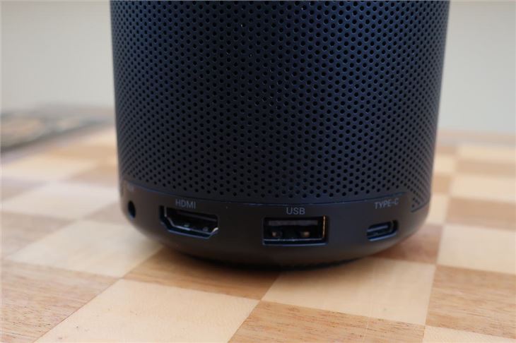 The 200 ANSI lumens projector isn't quite as bright as bigger, more expensive projectors so the Capsule II needs to be somewhere dark in order to work best, especially if it's sat far from the projecting surface. The ports on the back include a USB-C for charging and power (no data transfer), USB-A for external storage like memory sticks or an Amazon Firestick, full-size HDMI input for game consoles and the like, and an aux audio output.