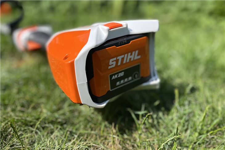 There are three 36V lithium-ion batteries available, the AK 10, which is the lowest capacity battery with the lowest weight (ideal for use with hedge trimmers), the AK 20 which we're testing here and the higher capacity AK 30 S. The AK 20 will last up to 30 minutes which Stihl says is enough time to mow up to 1250 metres of lawn edges. The FSA 60 R is designed for medium to large gardens with different areas of grass to trim.