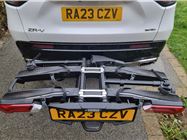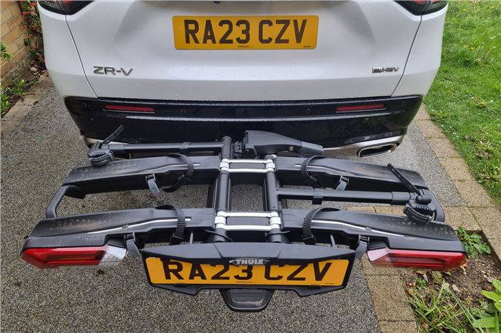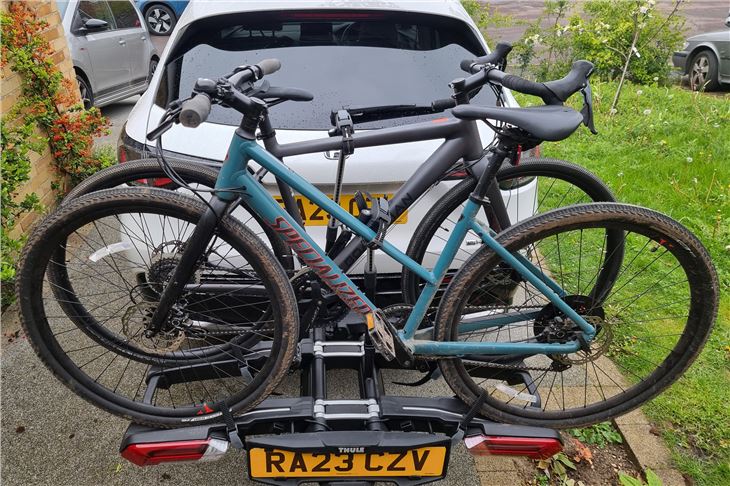 You can then lift your bikes on - if you're transporting a hefty e-bike you might want to think about investing in the optional folding loading ramp. Otherwise, lift them in place and extend the telescopic arms to lock your bikes in place. The clever bit here is how flexible this is - it can be positioned pretty much anywhere depending on the design of the bike, as well as the rear wheels (if you're transporting a carbon fibre bike frame for instance).